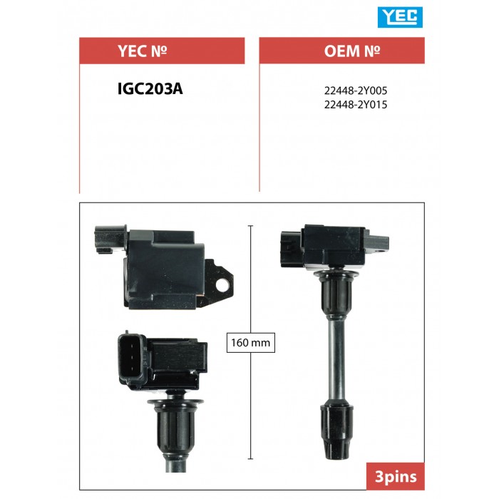 Катушка зажигания /передняя правый /левый YEC для Nissan Cefiro A33 1998-2002 Europa Maxima CA33 2000- VQ20DE; IGC203A; (TG-22448-2Y005) 224482Y015 224482Y007
