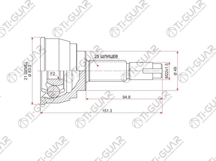 ШРУС наружный /передний правый /левый /TI-GUAR для Nissan Tiida 2005-2008 C11 HR15DE; 21*49*25; TG-7480; (NI-080 0210-080) 39100ED00A 39211ED000 39101ED00A