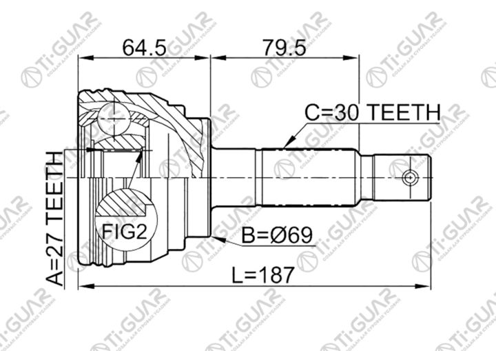 ШРУС наружный /TI-GUAR для Toyota Prado 1996-2002 90/95 Hilux Surf 1995-2002 185002 185; 27*69*30; TG-9538; (TO-038 TOE038) 4343035030 0110038 N12292H